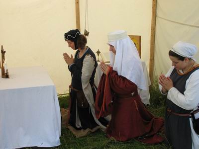 Wir sind eine Mittelaltergruppe aus Braunschweig und stellen eine Pilgergruppe dar, die sich in der Mitte des 12. Jahrhunderts auf den Weg in das Heilige Land gemacht hat.